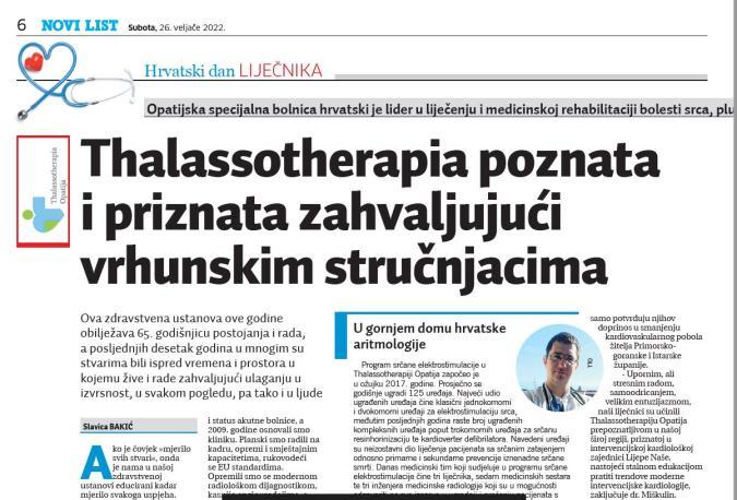 U Novom listu od 26. 02. 2022., članak koji govori o našim liječnicima: